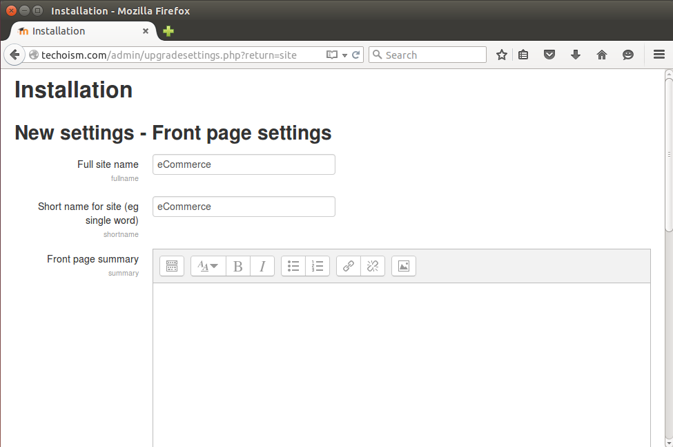 Now your moodle site has been successfully installed.